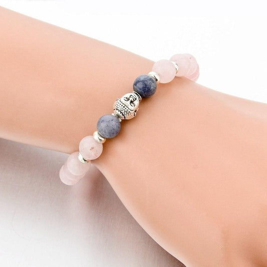 PINK NATURAL STONE BEADS BUDDHA BRACELET
