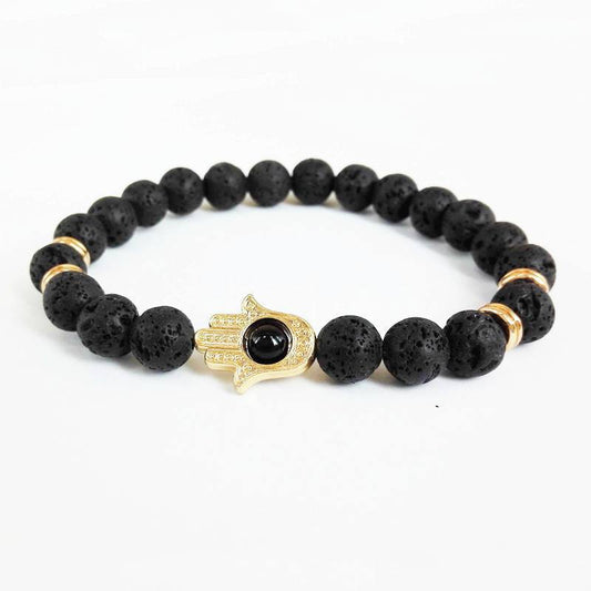 24K GOLD PLATED 8MM BLACK LAVA ENERGY STONE BRACELET