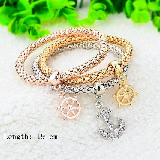 GOLD PLATED WHEEL OF DHARMA & ANCHOR BRACELETS BUNDLE. 3 PIECES