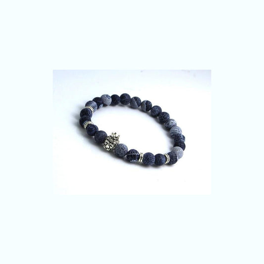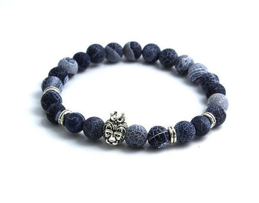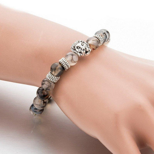 SILVER PLATED LION'S HEAD AGATE BEADS BRACELET