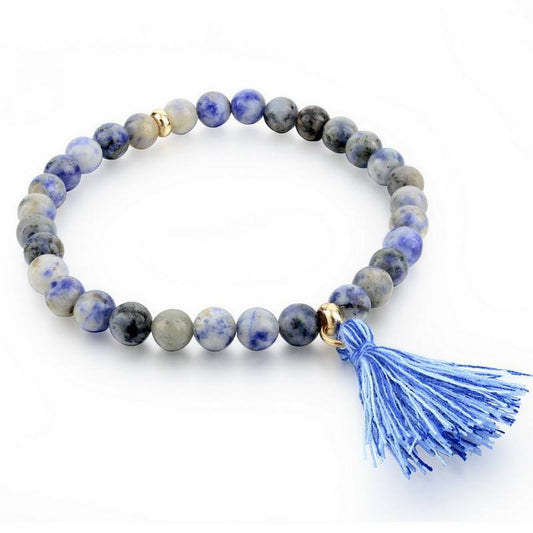 TURQUOISE NATURAL STONE BEADS & GOLD TASSEL BRACELET