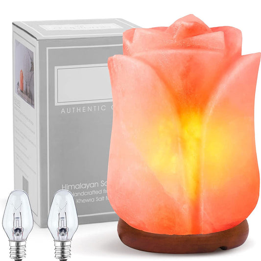 7 Inch Himalayan Salt Lamp with Dimmer Cord | Crystal Night Light with Wood Base