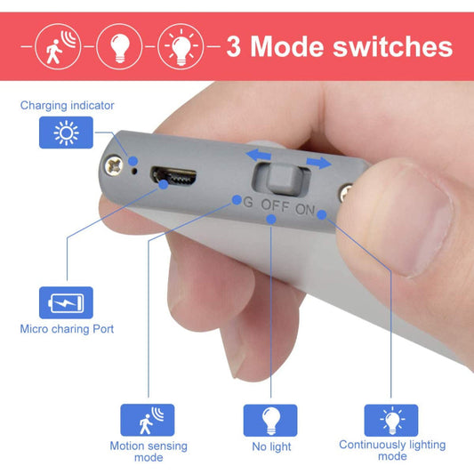 LED Motion Sensor Cabinet Light, Under Counter Closet Lighting, Wireless USB Rechargeable Kitchen Night Lights, Battery Powered Operated Light,54-LED Light for Wardrobe, Closets, Cabinet, Cupboard(2 Pack)