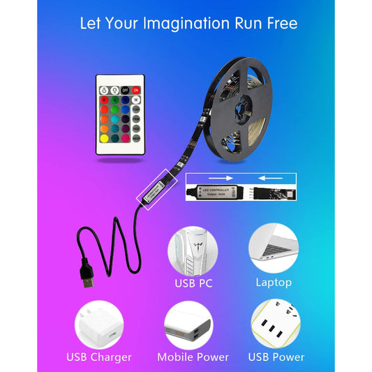 LED Strip Lights, USB Powered RGB 15 Color LED Lights with Remote Control, LED Lights for Bedroom, Party, Kitchen, Home Decoration, LED Step Lights