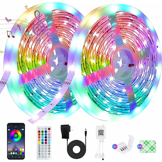 LED Strip Lights Music Sync Color Changing 5050 RGB Led Lights For Bedroom, Built-in Mic, Led Lights With App Control And IR Remote For Home Decoration