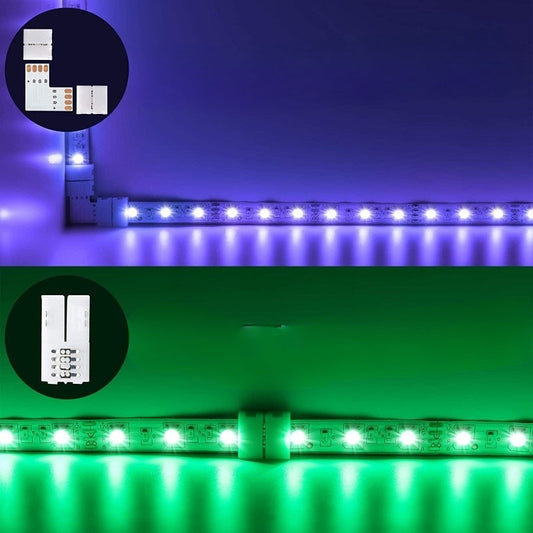 L Shape 4-Pin LED Connectors 10-Pack Wide Right Angle Corner Connectors Solderless Adapter Connector Terminal Extension with 22Pcs Clips for 3528/5050 SMD RGB 4 Conductor LED Light Strips