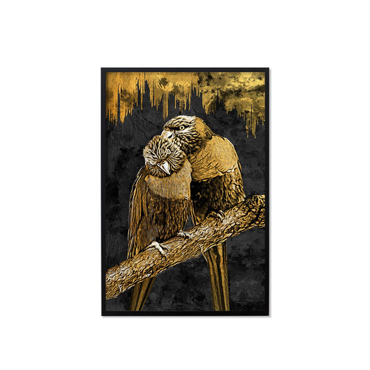 Golden Birds Abstract Art Stretched Canvas