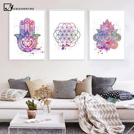 Hamsa Flower or Life Yoga Canvas Art