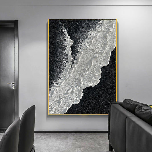 Abstract Texture Hand Painted Wall Decor Art Poster Ocean Seaside Thick Gray And Black Oil Painting Simple Design Wall Art, Unframed.