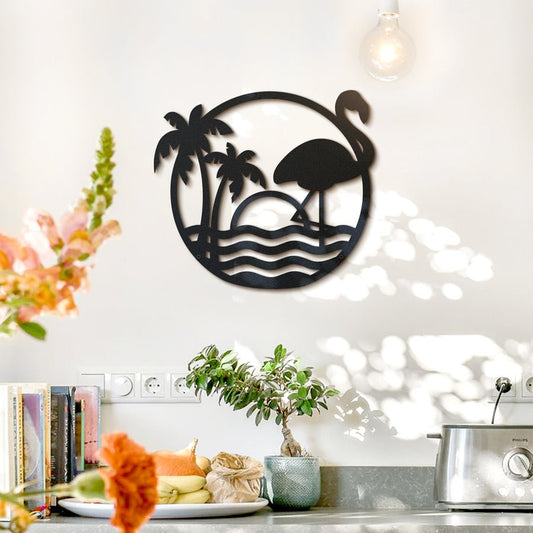 Palm Tree Flamingo Metal Wall Art