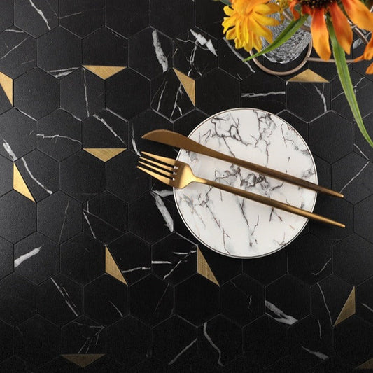 Black Gold Hexagon Mosaic Tile Decal (Set of 22)