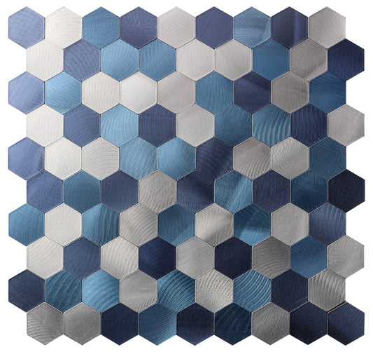 Blue Brush Finish Mosaic Tile Decal (Set of 22)