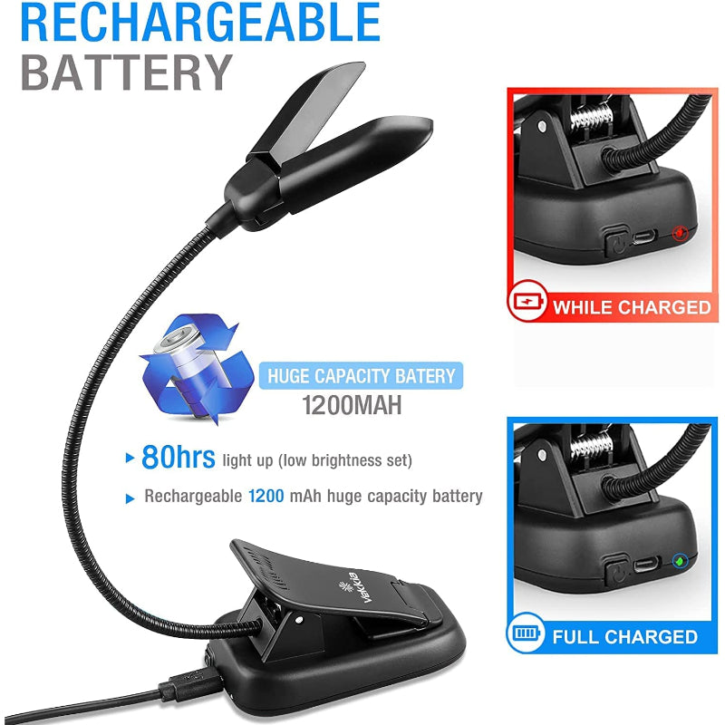 Powerful Rechargeable Battery: Say goodbye to constantly replacing batteries. The Type-C rechargeable reading light features a built-in rechargeable battery that provides up to 80 hours of wireless reading time on the low brightness setting. The durable LED can last up to 100,000 hours without needing a replacement. A Type-C connector is included for charging.