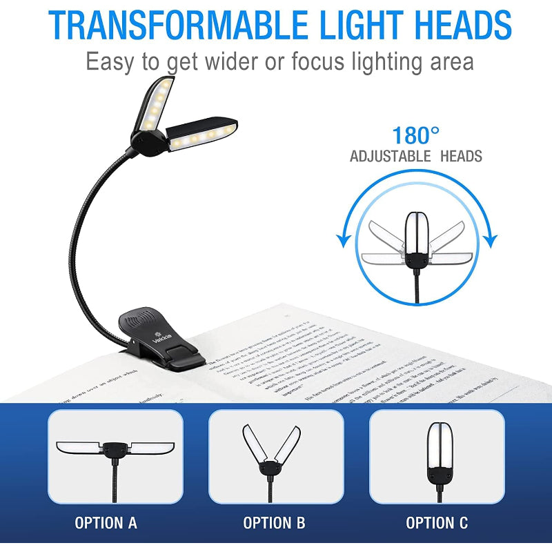Extendable Lighting Head: Designed with a patented whale tail design, the foldable lighting head can be adjusted up to 180 degrees, providing a larger lighting area. The advanced SMD LED technology offers the best color temperatures and brightness, reducing eye strain during nighttime reading.