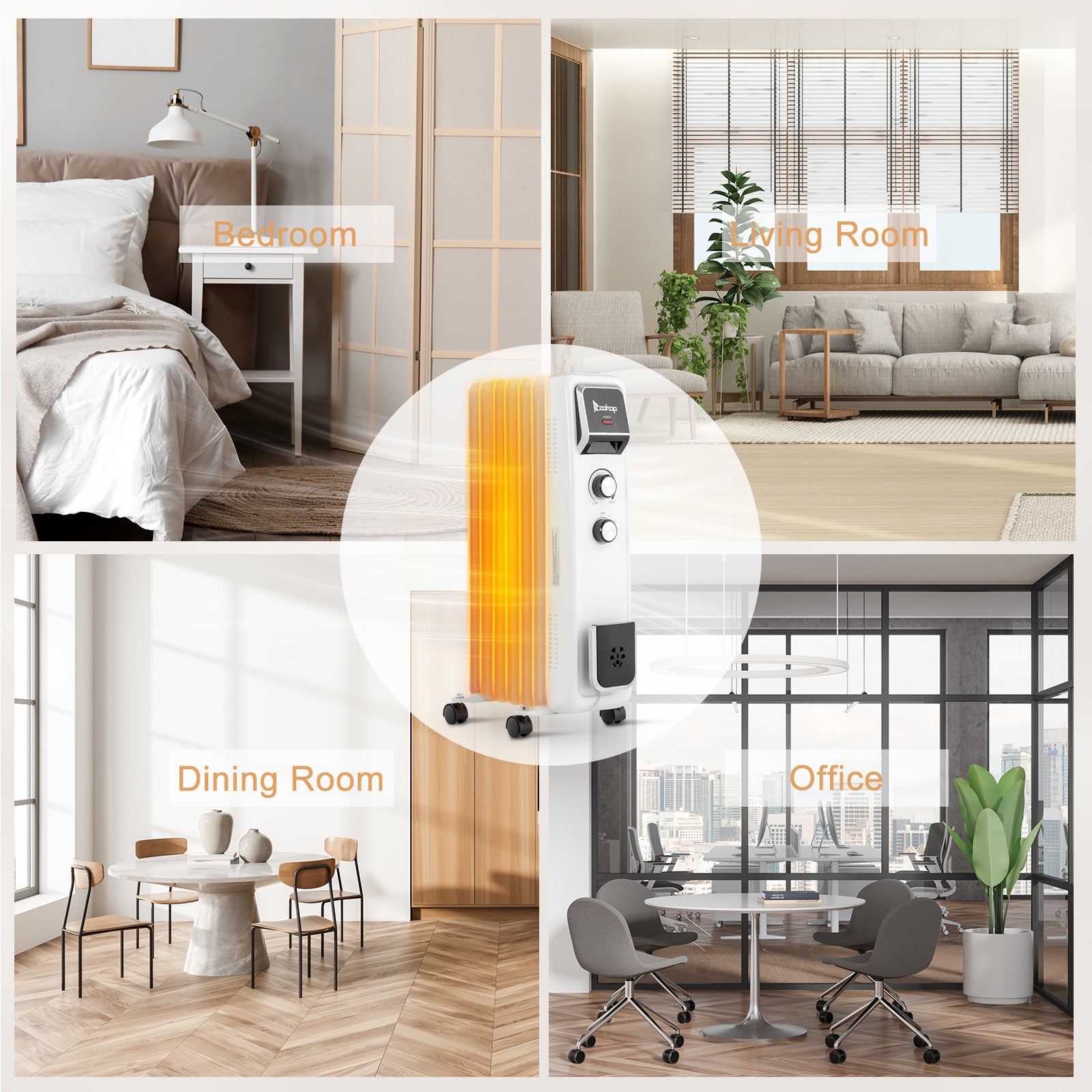 5. Portable Design with Wheels: Effortlessly move this heater from room to room with its four 360° swivel wheels. Whether you need extra warmth in your bedroom, living room, or office, this heater's portable design makes it easy to transport and use wherever it's needed most.