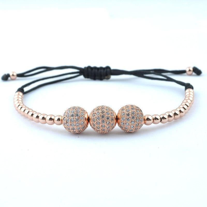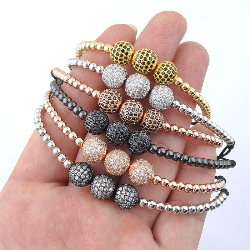 - Crafted with three 10m 18kt gold plated zircon discos ball and 4mm 18kt gold plated beads.