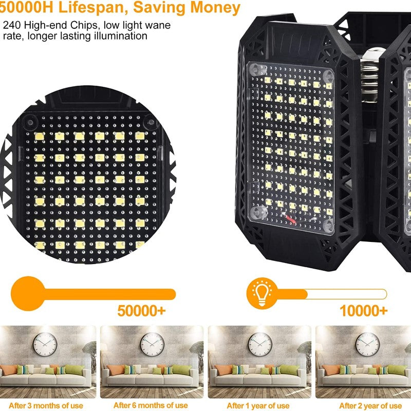 Adjustable Design: Enjoy the flexibility of five adjustable panels with a 90° rotating angle, allowing you to illuminate every corner of your space and eliminate any lighting dead spots.