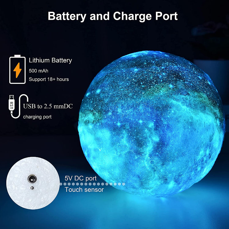 - Night light and cool decorate lamp. This cool moon lamp could be used as a night light for adults and children, or put on special occasions as a decorative light/kids' room light/party light/living room décor lamp/creative lamp, etc.