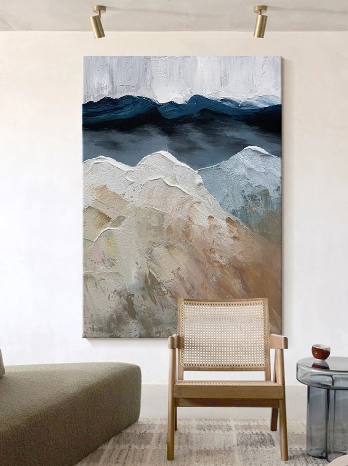 Abstract Thick Heavy Blue Ocean Wave Knife Picture Artwork Wall Decor Art Poster Ocean Seaside Thick Gray Black Oil Painting Simple Design Wall Art, Unframed.