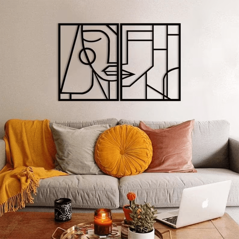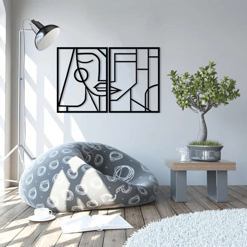 Abstract Women Face Metal Wall Art (2 Pieces)
