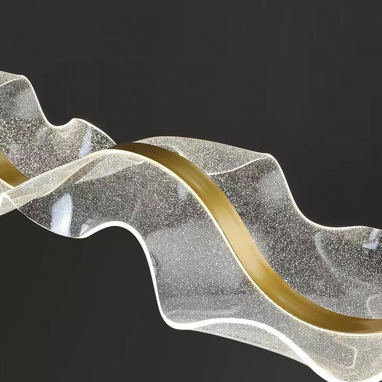 This beautiful LED pendant makes a stunning addition to an otherwise simple room. The acrylic is heated and bent by hand. It is then matched to a powder coated curved light outfitted with long-lasting LEDs.
