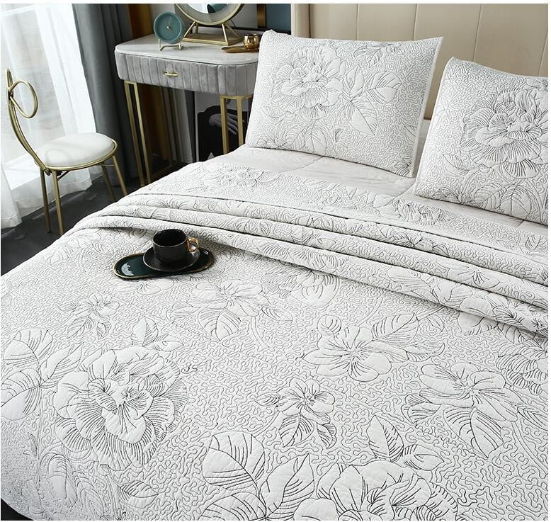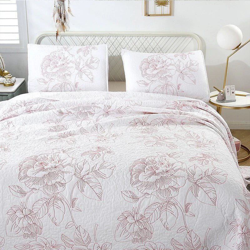 Dress your bedroom in the sophisticated Amberly Floral Coverlet Set. This set gives a modern update to the classic toile pattern. It's cozy, lived-in look and feel, the beautiful bedding that brings an effortless touch of understated luxury to your bedroom's décor.