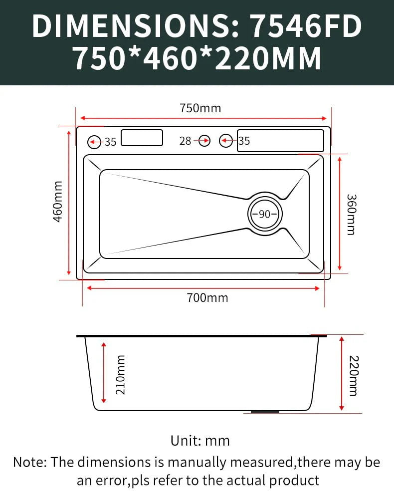 Sink Size: 75 x 46 x 22 cm / 29.52 x 18.11 x 8.66 in