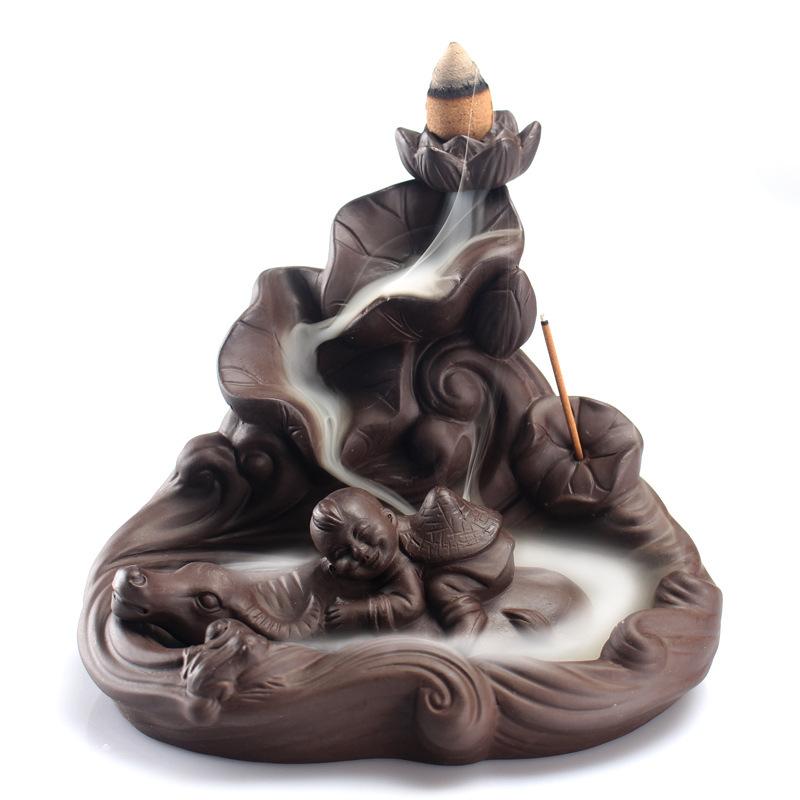When the incense cone is lit, the trail of smoke mimics a waterfall flowing down a mountainside. This lovely, ceramic incense burner is ideal for burning your favorite incenses while providing a relaxing and decorative touch to any space.