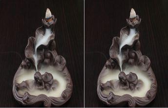 Lit an Incense Cone and place it in its place in the burner (top right). After the cone has been lit well, ash will form, which will push the smoke down towards the hole of the incense cone and through the small hole in the Incense Burner, creating the smoke trail that will be giving the waterfall effect.