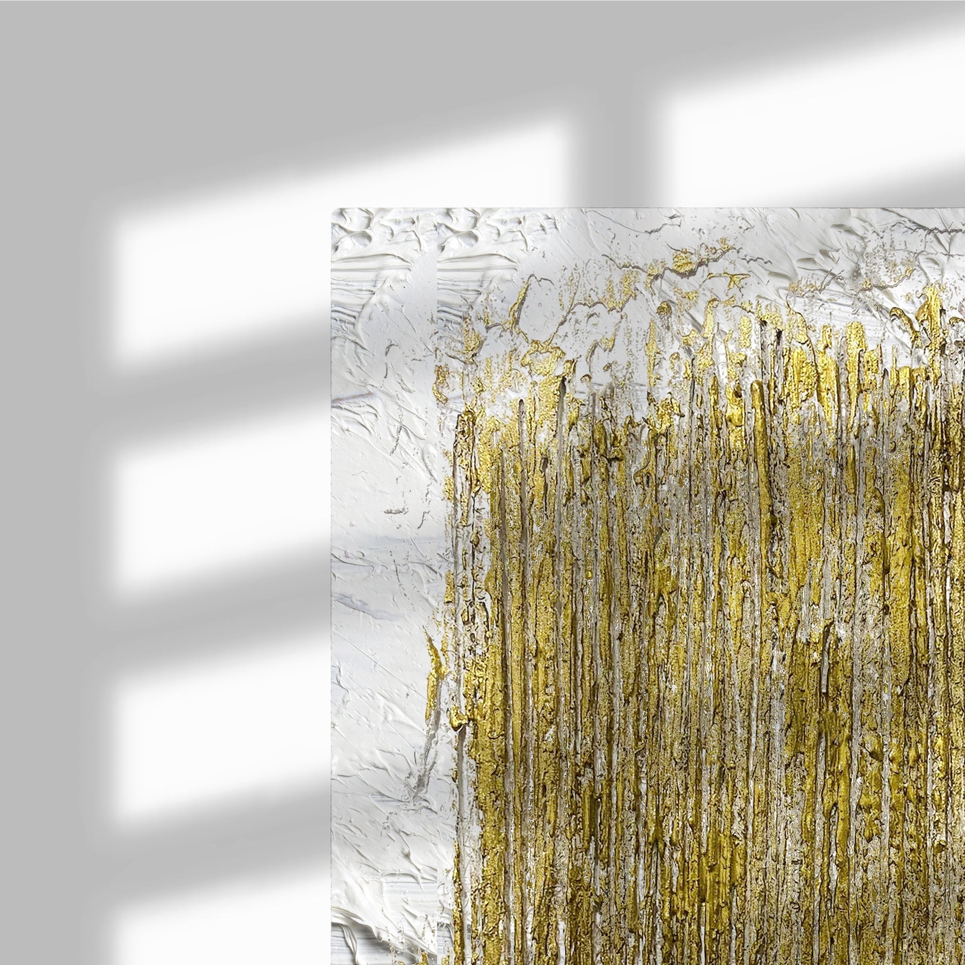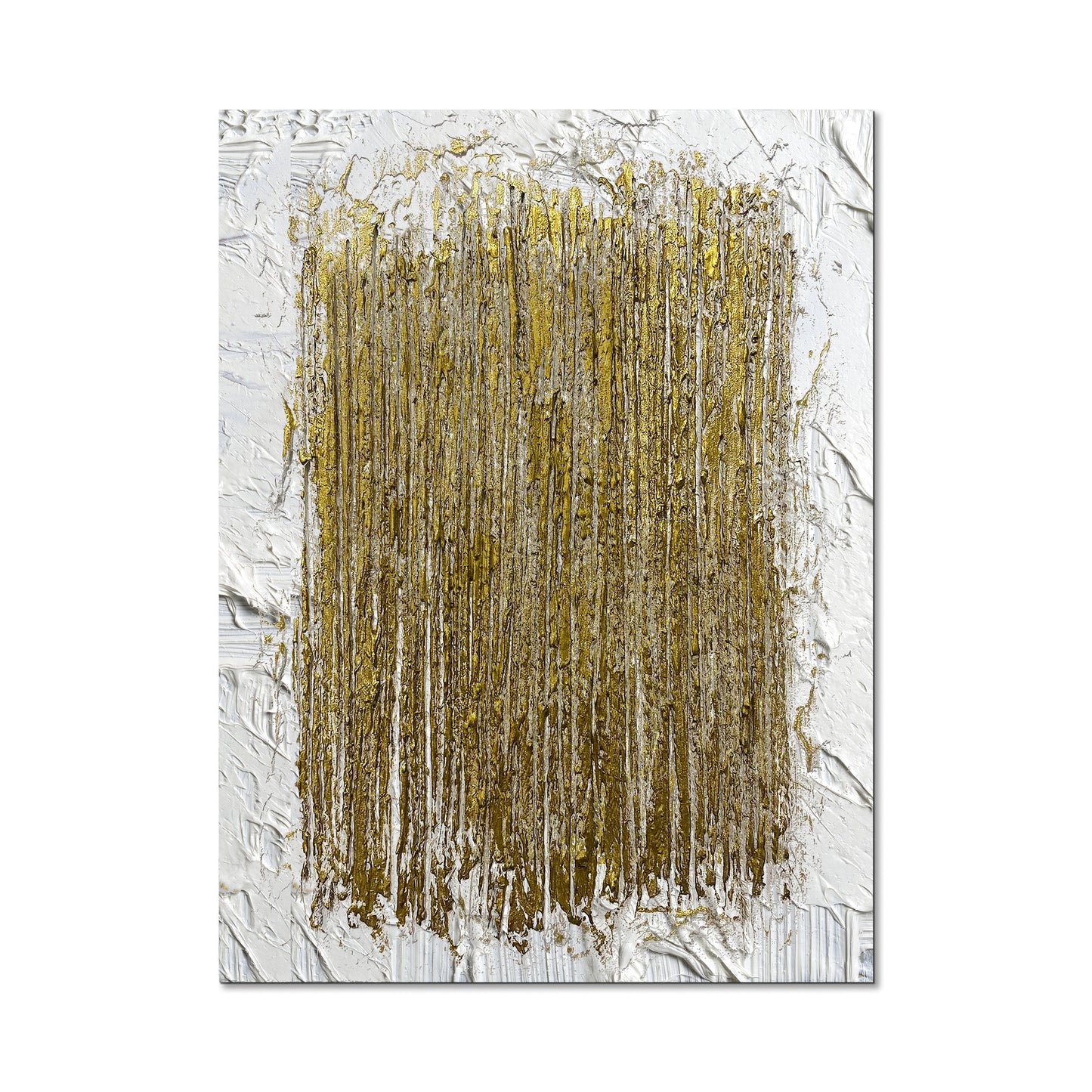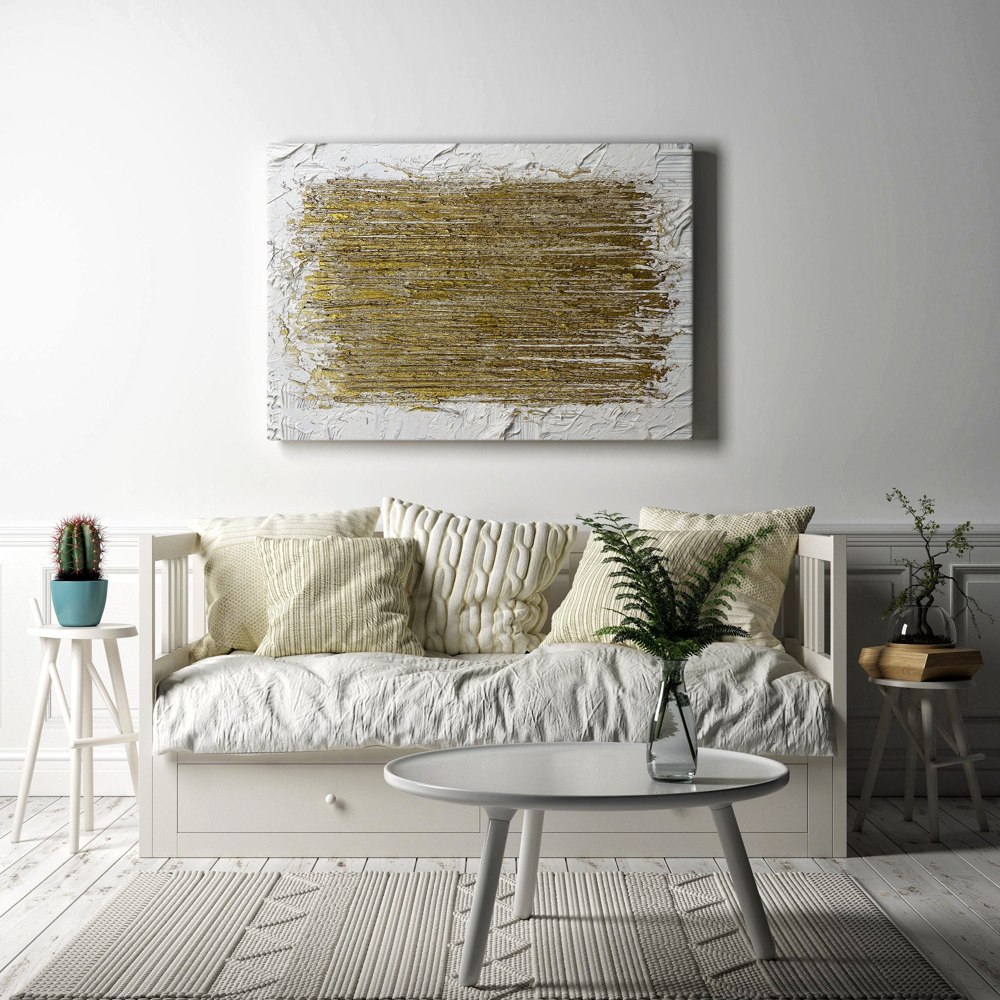 Beige & Gold Spackle Painting with Plaster Wall Art
