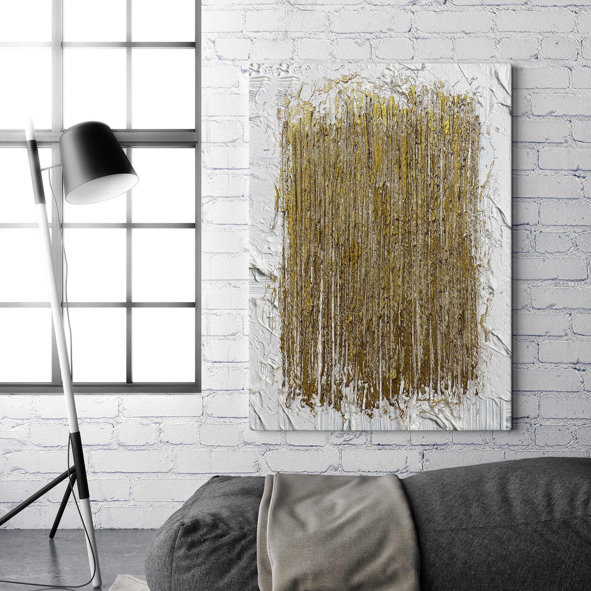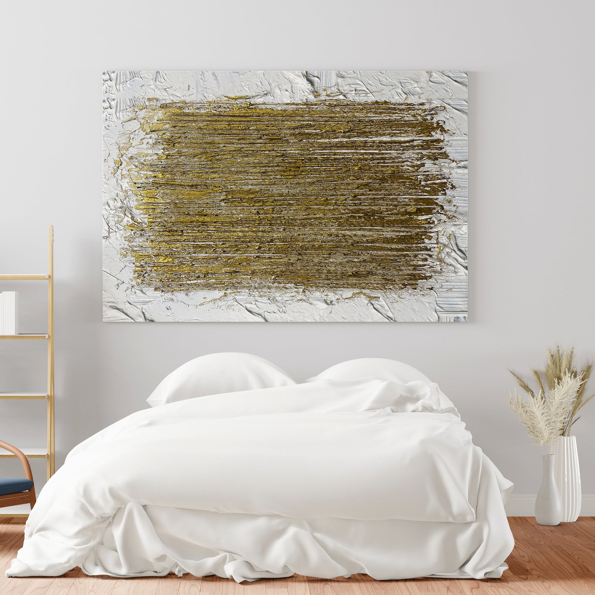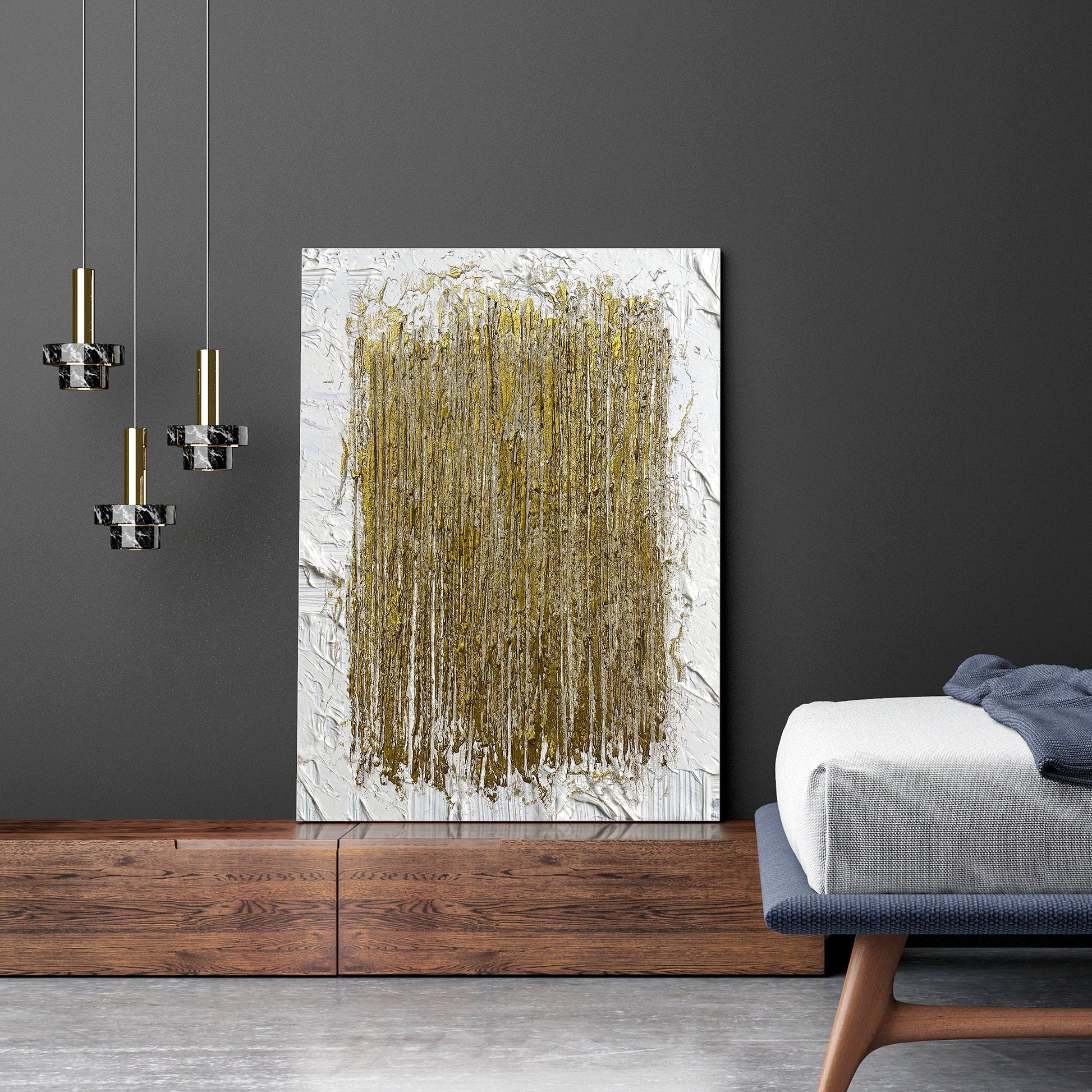 Beige & Gold Spackle Painting with Plaster Wall Art