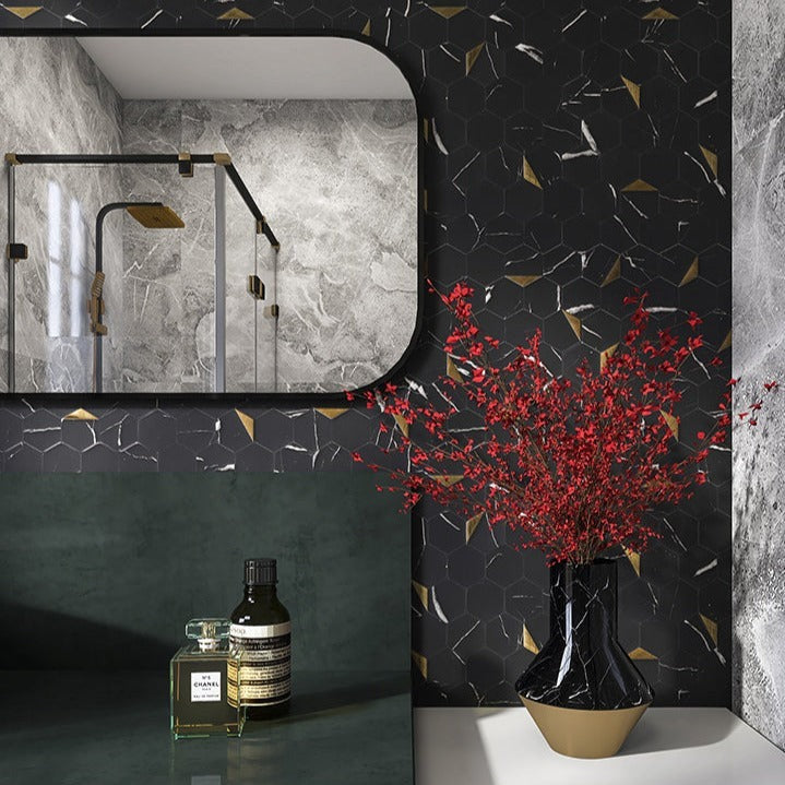 Black Gold Hexagon Mosaic Tile Decal (Set of 22)