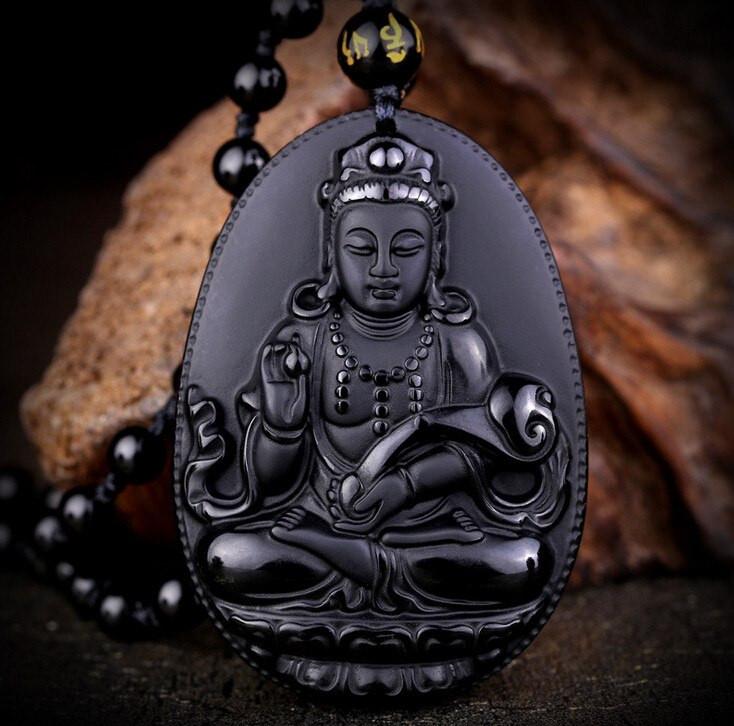 BLACK OBSIDIAN RUYI GUANYIN NECKLACE