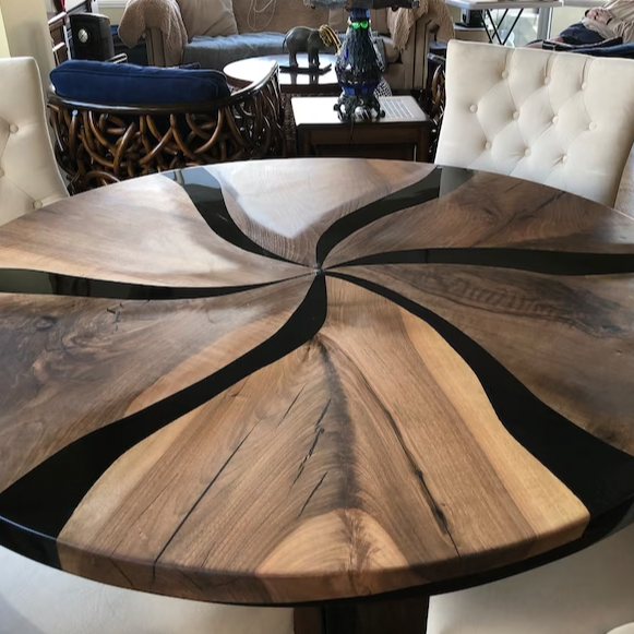 All our epoxy tables use black walnut slabs, which in our opinion, is the gold standard material for epoxy tables. Although black walnut it is one of the most expensive woods to buy in North America, it is for good reason - it's incredible hardness, grain pattern, and ability to take absorb stains well, creates a beautiful piece of art that is extremely durable.
