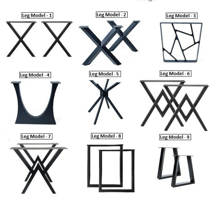 We have standard leg options available in the pictures, and can also do full fabrication for customization. Please note down your leg option in the order notes and preferred method communication - we will be in touch regarding your order.