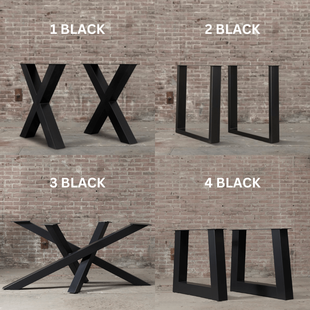 We have standard leg options available in the pictures, and can also do full fabrication for customization. Please note down your leg option in the order notes and preferred method communication - we will be in touch regarding your order.