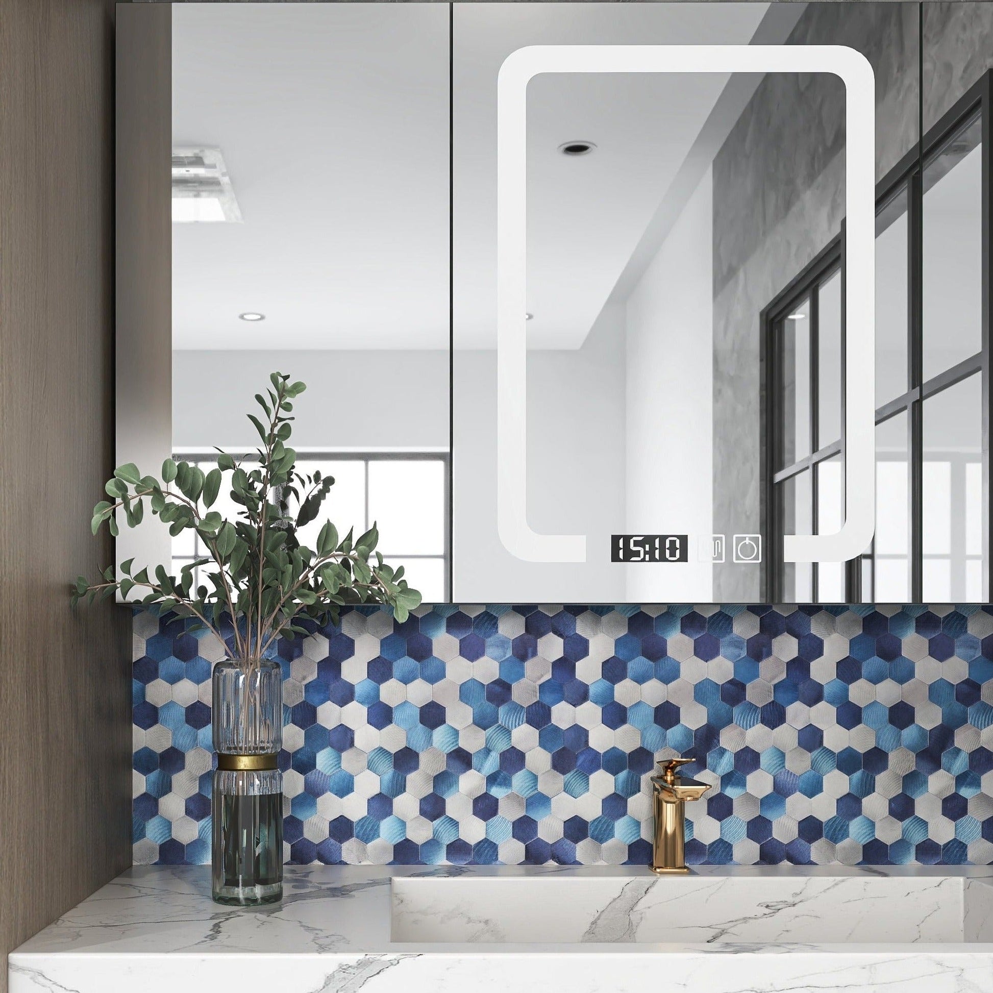 Blue Brush Finish Mosaic Tile Decal (Set of 22)