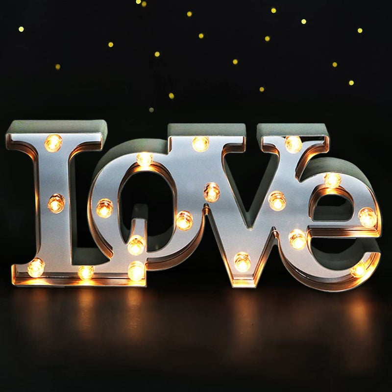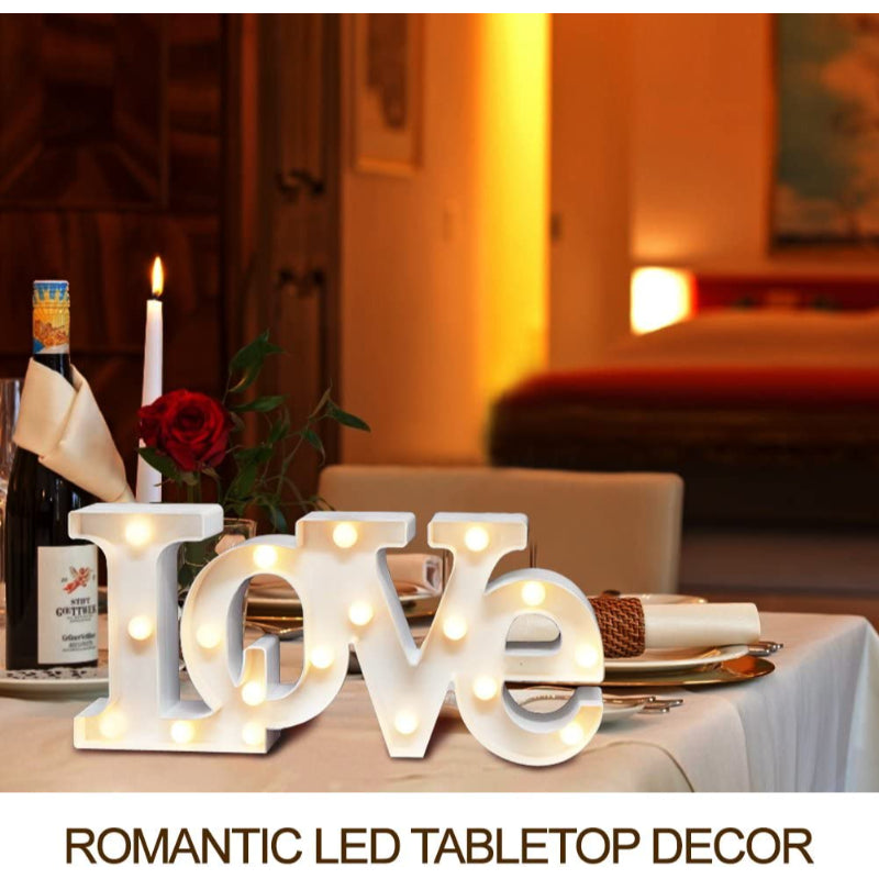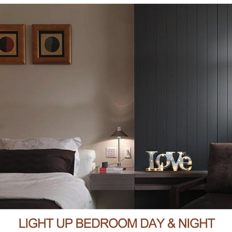 - The 7" TALL 16" WIDE textured LARGE LED letters spell out a captivating, so elegant both by day and at night, making a bold statement for your coming big day, holidays, and every day - At night, 18 LED bulbs inside the marquee light up it in a romantic warm white glow, emitting adoration & affection - An inspirational way to light up your bedroom, engagements, anniversaries, wedding, holidays and special events!