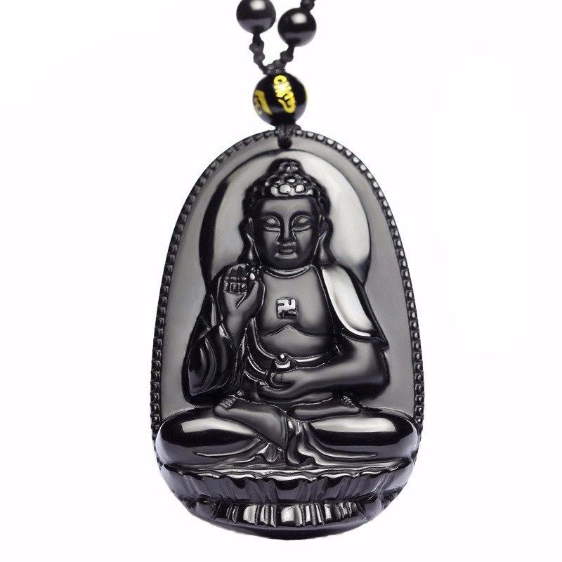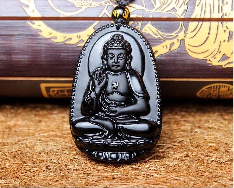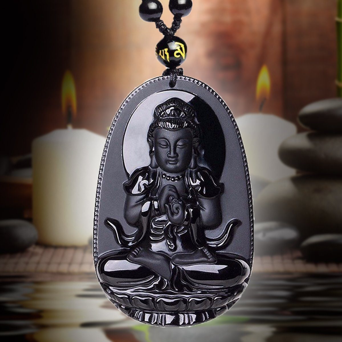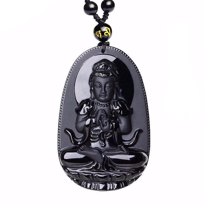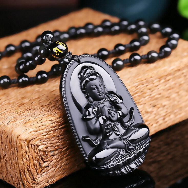 CARVED BLACK OBSIDIAN PENDANT NECKLACE