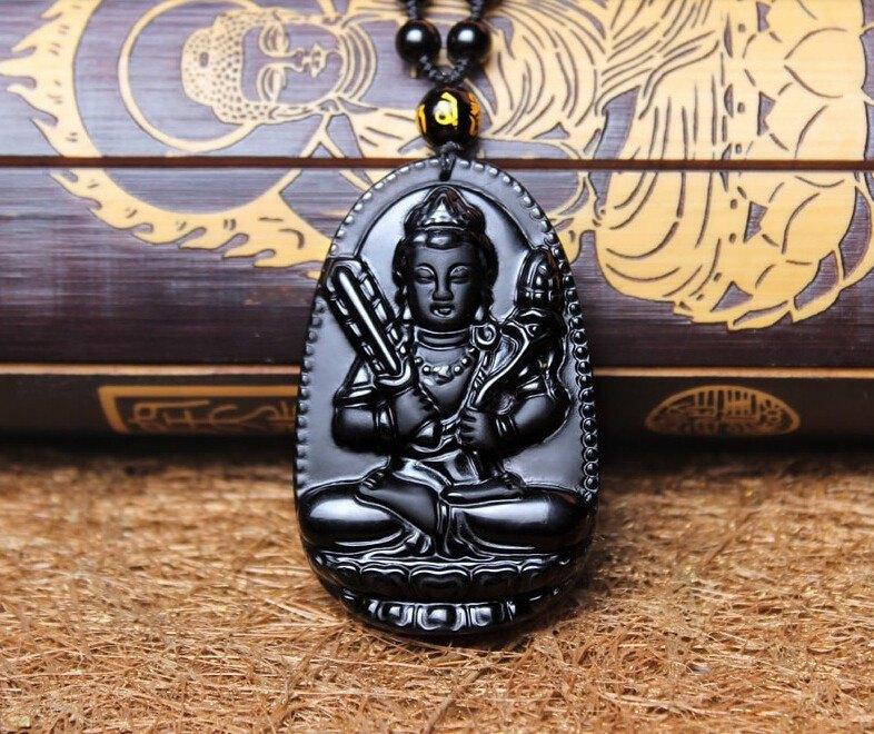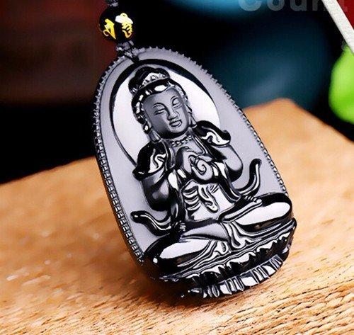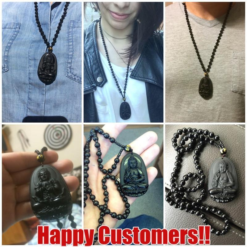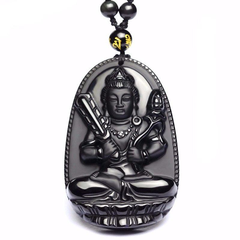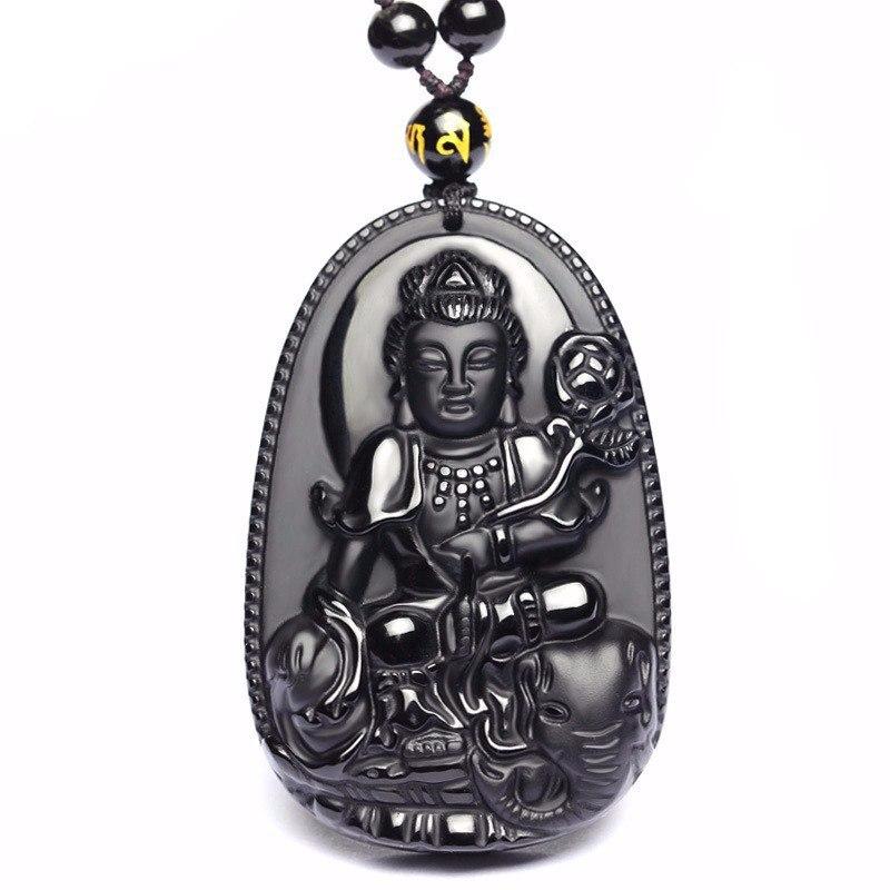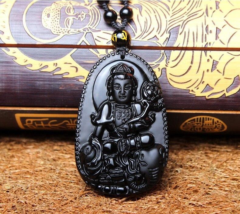 CARVED BLACK OBSIDIAN PENDANT NECKLACE