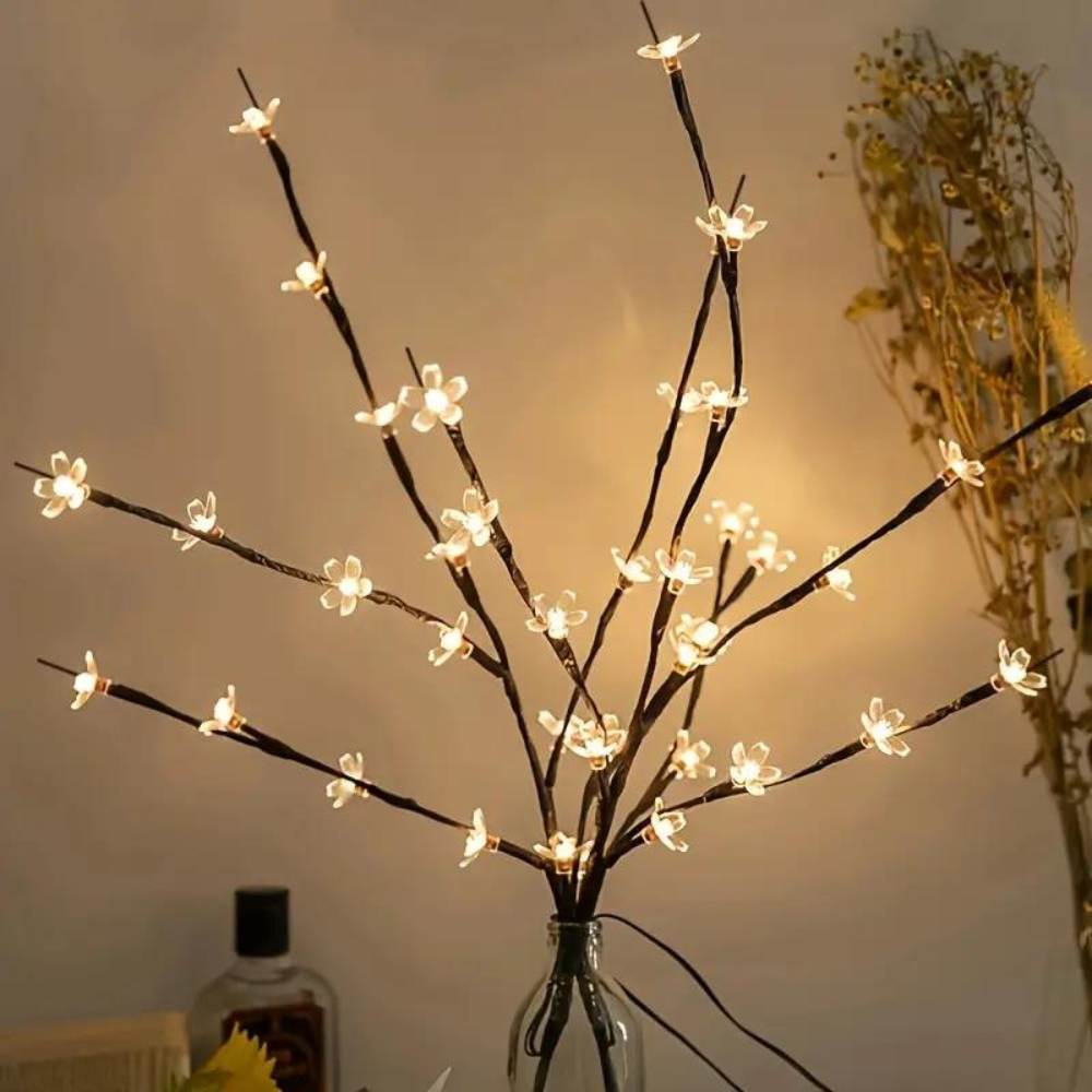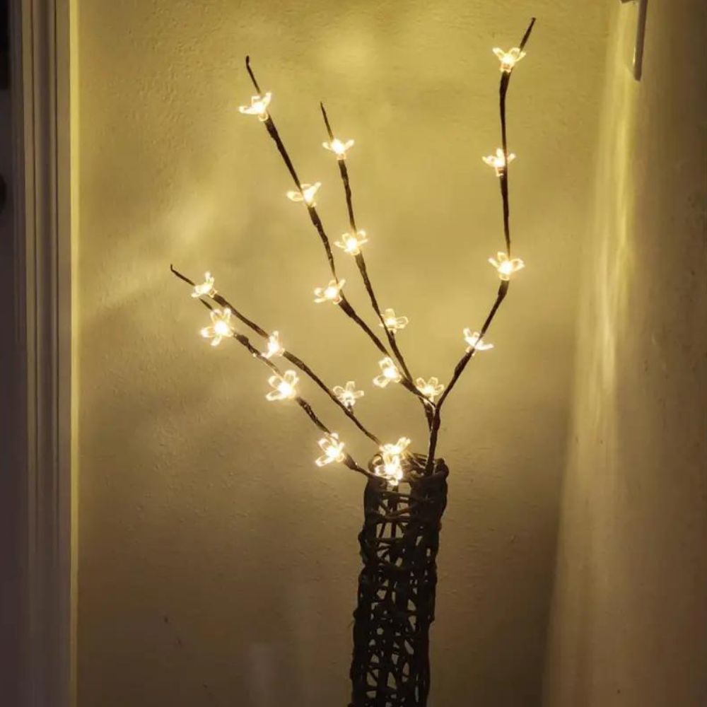 - The package comes with 1 Cherry Blossom Tree Lighting which has 4 branches and 4 glowing flowers on each branch. The tree requires 2 AA batteries, not included.
