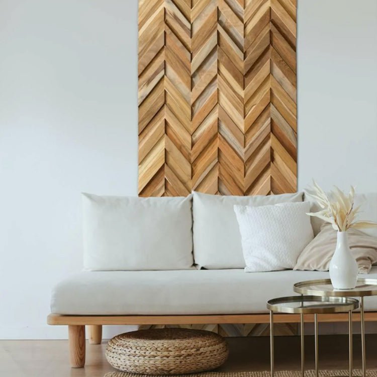 The panels are made of high-quality solid wood. It varies in natural wood tones that give the interior innovativeness and vogue. It is equipped with mesh mounted wall tiles for easy DIY installation.