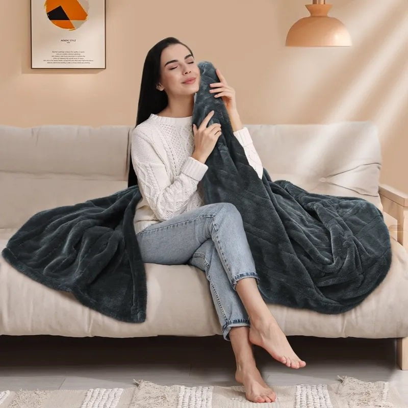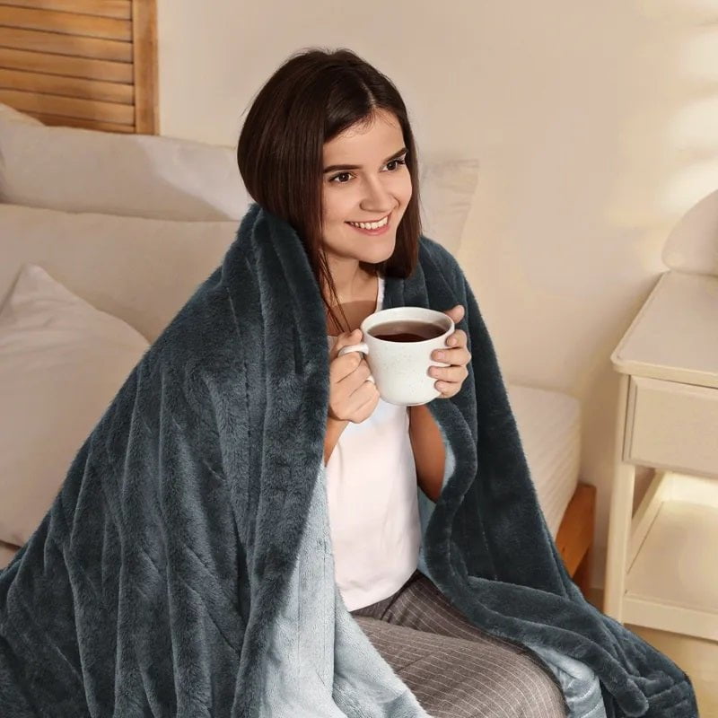 It boasts a fast-heating design for immediate warmth in cold weather, a convenient controller with various heating settings, an auto shut-off function for added comfort, an over-heat protection feature, a portable design and a long power cord for use anywhere. it is made of high-quality fabric that is soft and comfortable to the touch. It is also easy to maintain and clean as it is machine washable.