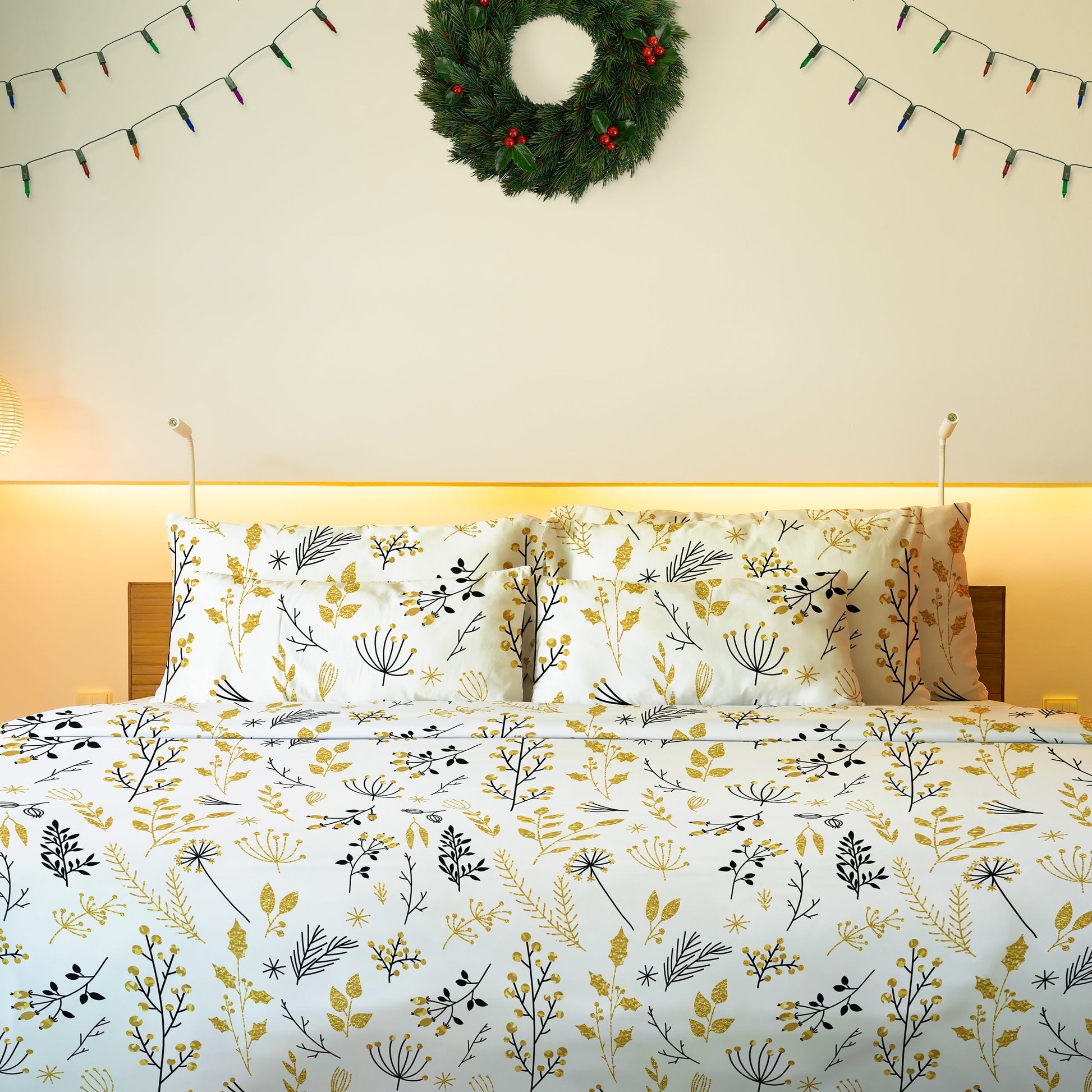 Christmas Gold Floral & Leaf Berries Duvet Cover Set