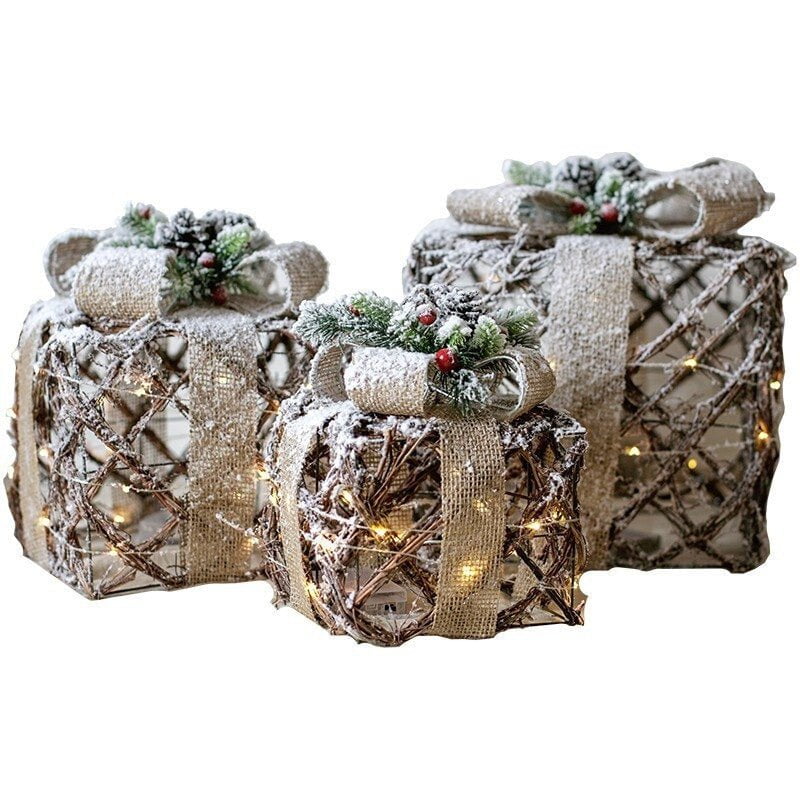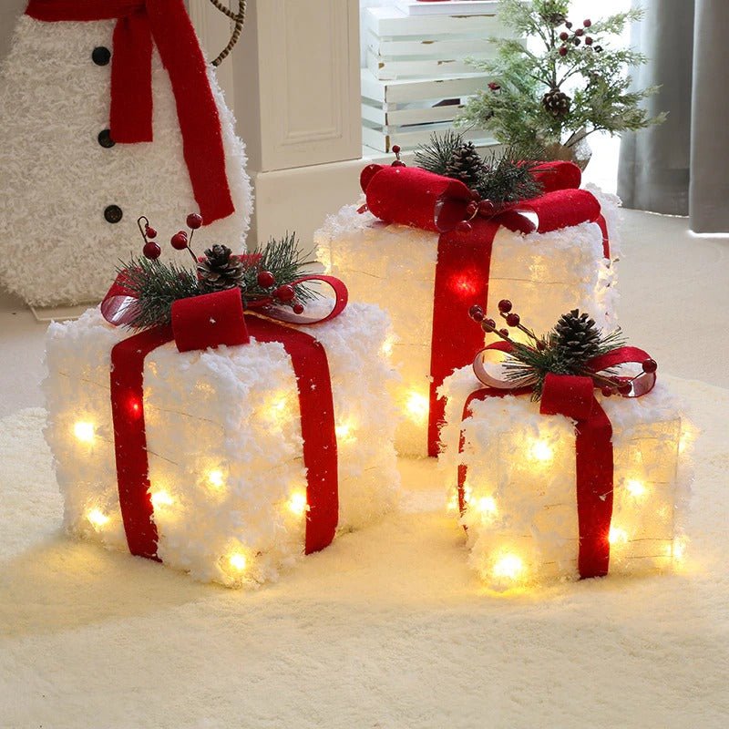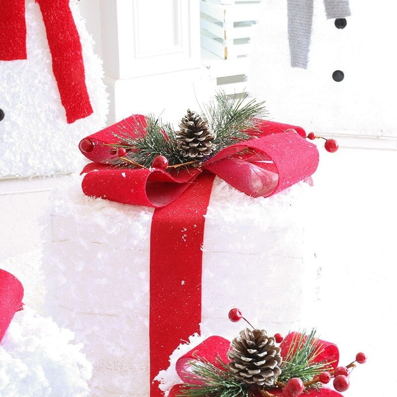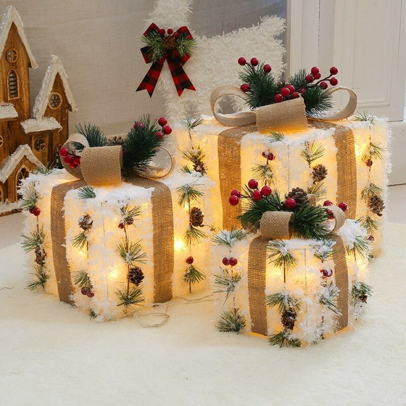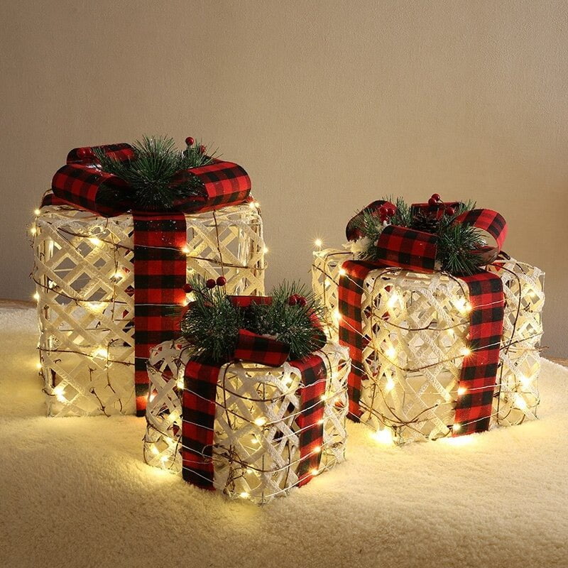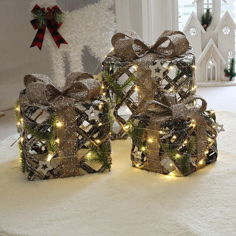 Are you searching for an impressive Christmas decoration to light up your home? There is a perfect choice for you! This lighted gift box set adopts the classic Christmas gift box, and the string lights give off a wonderful fairy lighting effect. It can be used at Christmas parties, Thanksgiving gatherings, weddings or other festivals and occasions.
