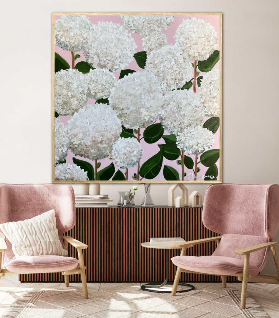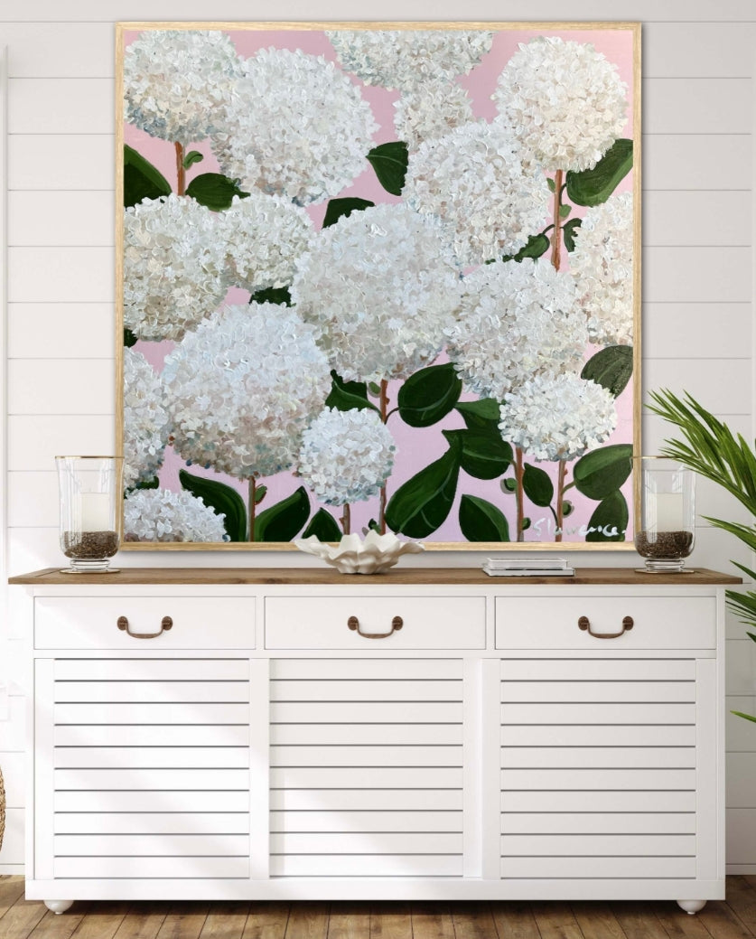 Coastal Hydrangeas Wall Decoration Art Poster Oil Painting Simple Design Wall Art, Unframed.