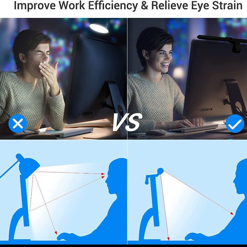 - Sensitive Touch Control & Auto-Dimming Design: New humanized design lets you control this office lamp by touching the switch. No more fumbling with a control cord! With a built-in ambient light sensor, our screen light bar intelligently adjusts the brightness to a comfortable level, according to the surrounding light throughout the day, keeping your eyes feeling comfortable. When in the dark, touch the auto-dimming key, monitor light will gradually reach its brightest level in 7-8 seconds.