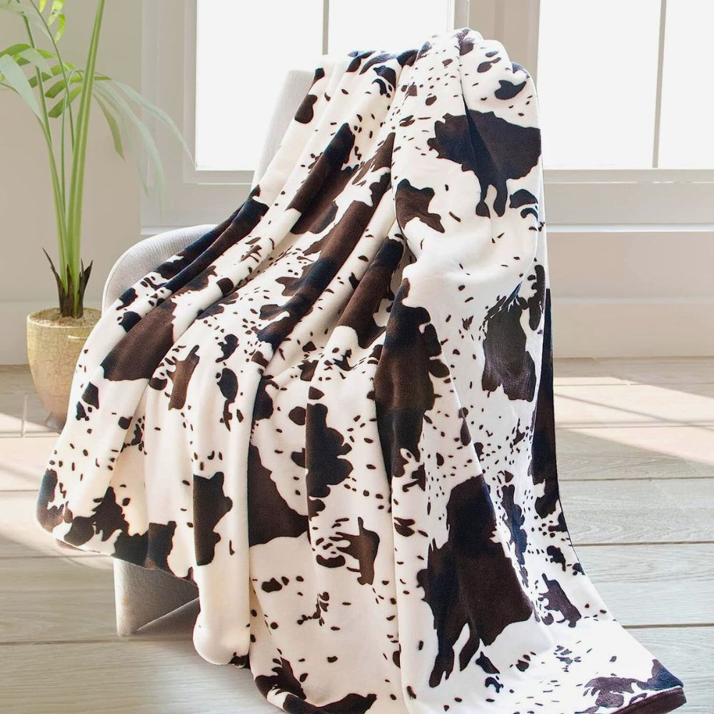 The Cow Print Throw Blanket is the Perfect Blend of Style and Cozy Comfort! Our Cow Print Throw Blanket is made from the softest, plushest material you can imagine. Whether you're curling up on the couch, enjoying a movie night, or simply looking to add some charm to your room, you'll relish the indulgent feel of this blanket against your skin.