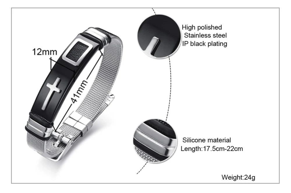 Embrace your spirituality with our Stainless Steel Cross Faith Bracelet. Crafted with precision, this bracelet features a striking cross design, symbolizing your unwavering faith and devotion.