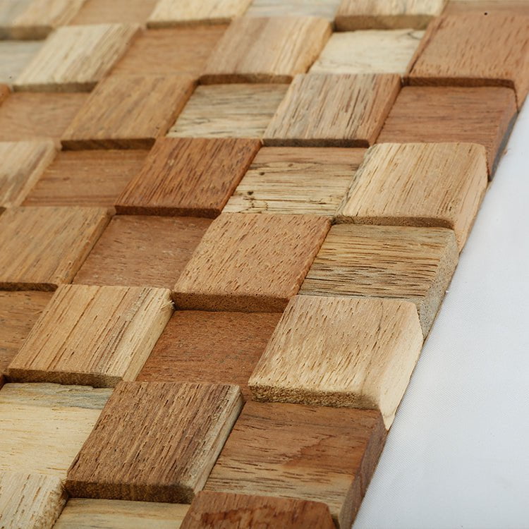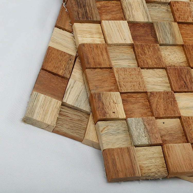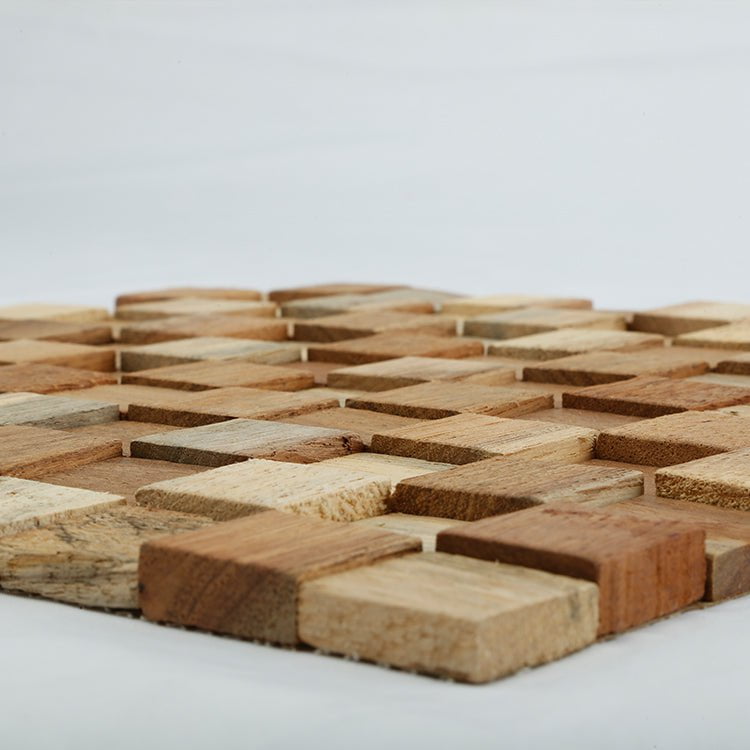 The panels are made of high-quality solid wood. It varies in natural wood tones that give the interior innovativeness and vogue. It is equipped with mesh mounted wall tiles for easy DIY installation.